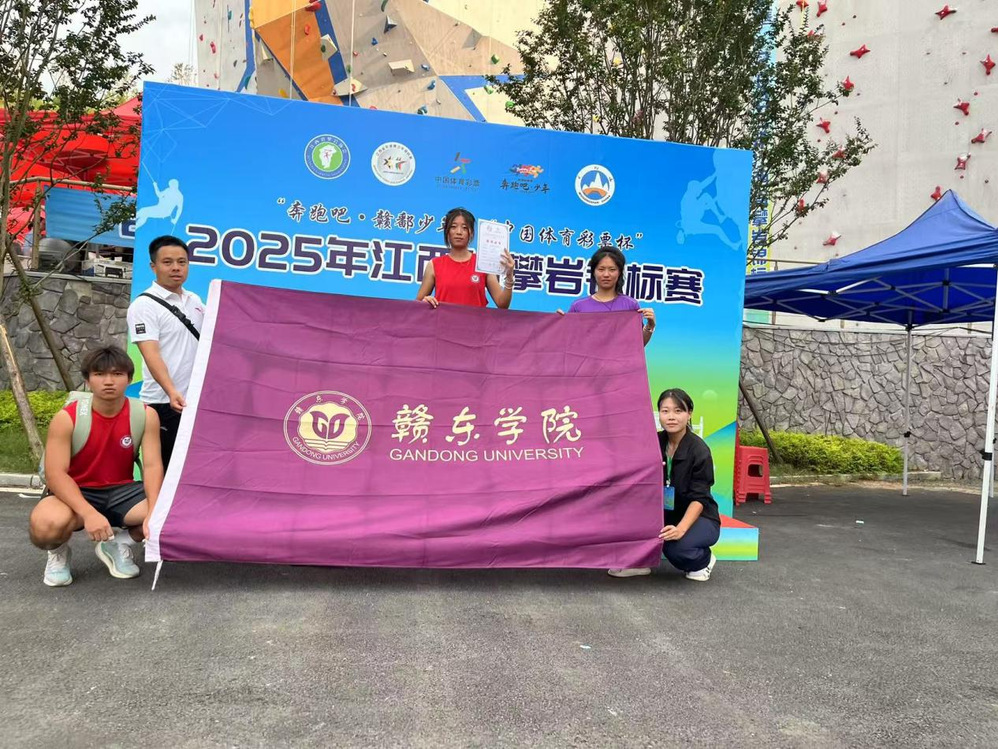 812日,江西省教育厅、江西省体育局主办的2025年江西省攀岩锦标赛在萍乡火热开赛。赣东学院攀岩队2024级体育教育2班张金云同学以顽强意志与精湛技艺突破极限,从全省众多高校队伍中脱颖而出,斩获女子个人速度赛一等奖,创下我校在该赛事的好绩!