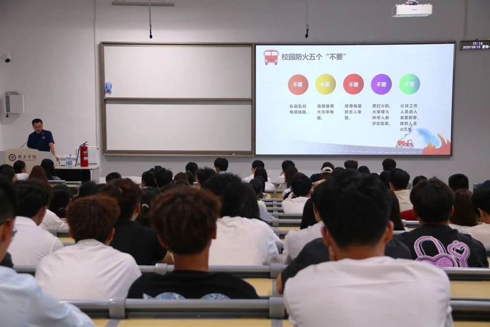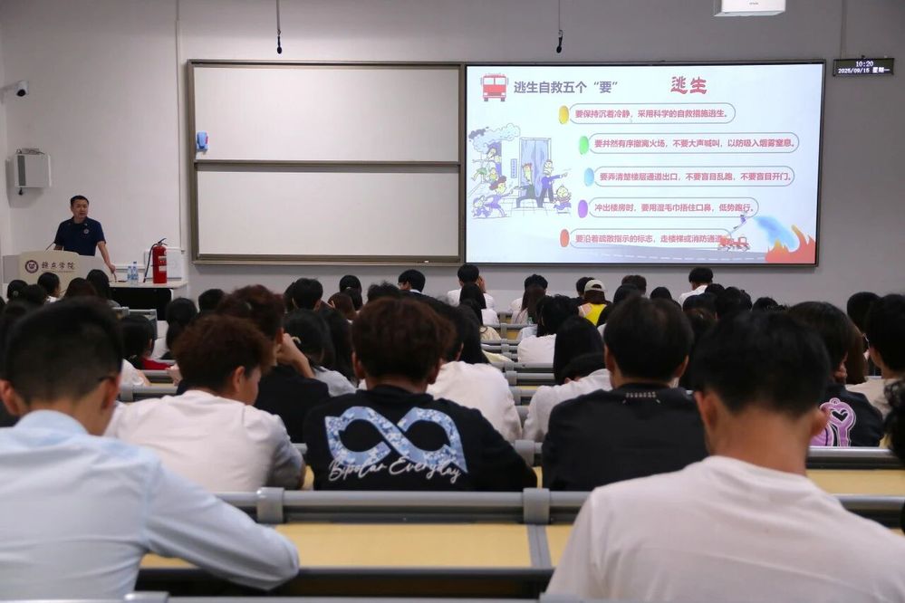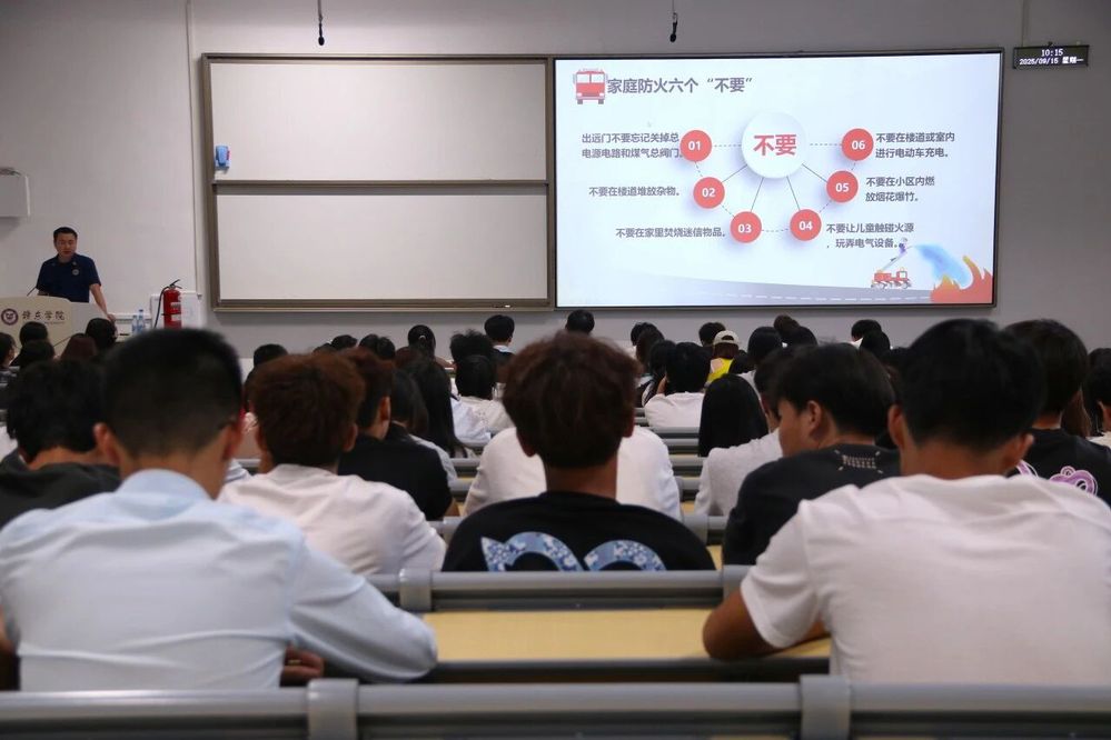 为切实强化校园消防安全管理,重点围绕新生入学教育关键环节,全面提升新生消防安全意识与应急处置能力,帮助其快速适应校园安全环境。2025年9月15日上午,我院邀请临川区消防救援大队周鹏老师为2025级新生开展了一场“关注消防安全 构建和谐校园”为主题的消防安全教育讲座。