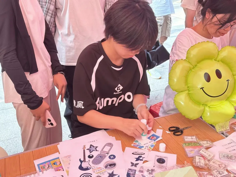 活动现场,纸张舒展,明黄色的笑脸气球在阳光下轻轻晃动,仿佛在无声邀请师生们踏入这场心灵的“拼贴派对”。