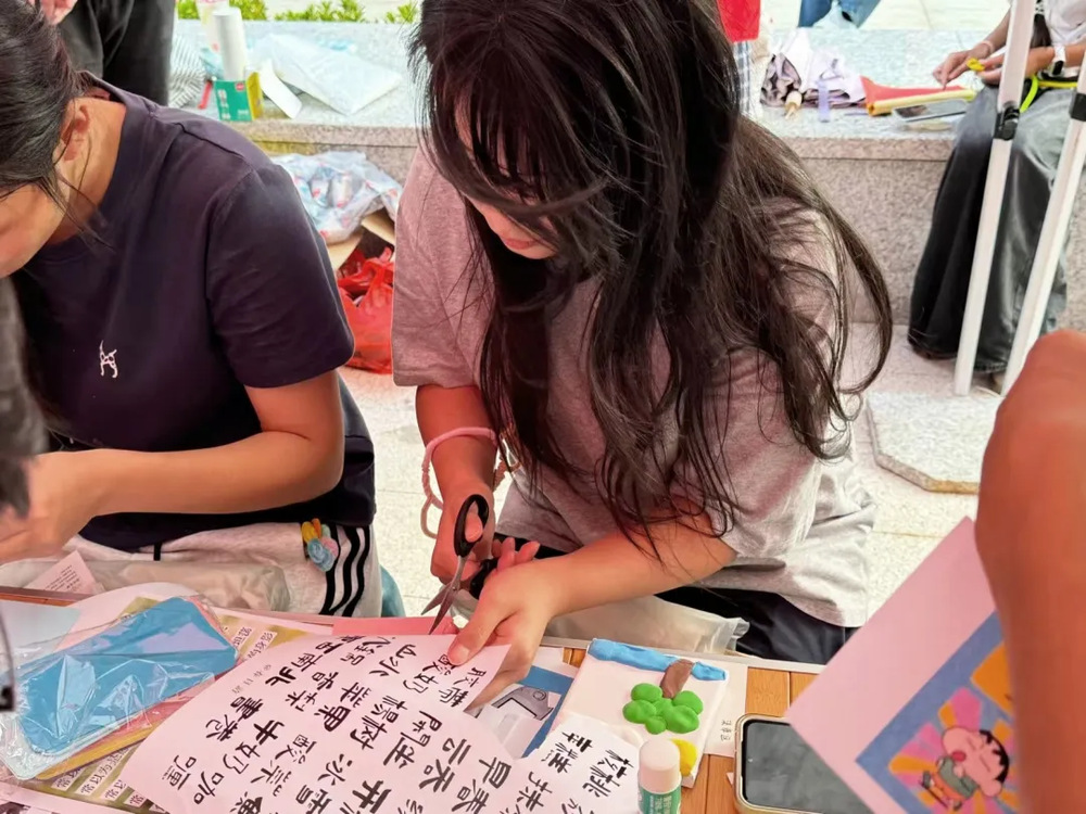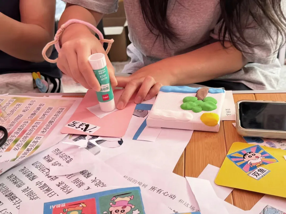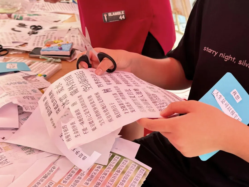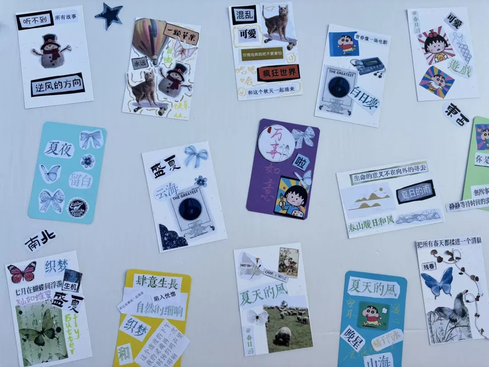 活动正式开始后,在工作人员的耐心指导下,大家纷纷投入创作。有人专注的用剪刀裁下文字贴纸,有人拿起马克笔,在卡片角落添上一抹亮色,它们不再是简单的手工作品,更成为了师生们自我觉察的“情绪日记”。
