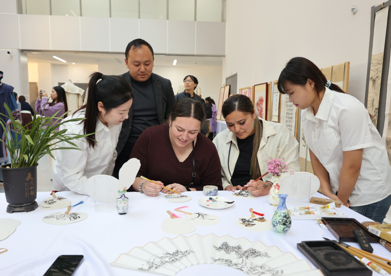 如果说汤显祖文化是抚州走向世界的名片,高校便是传统文化传承创新的核心阵地。在赣东学院人文学院,“梦启临川·巧手传韵——非遗技艺沉浸式体验展”活动热闹举办,扎染、国画、剪纸等六项非遗体验区前,中外青年围坐一堂,以指尖互动解锁中国传统文化的密码。