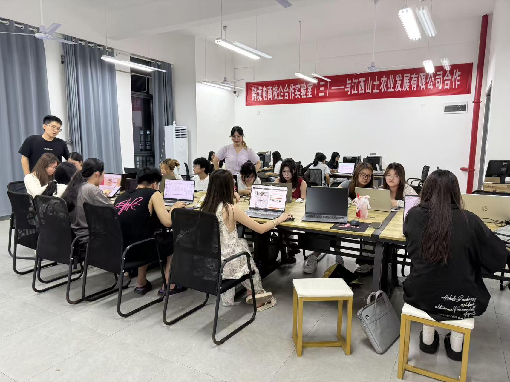 以提升学生跨境电商实操能力为目标,使其更好对接行业需求。实验室配备电脑、空调、网络设备等仪器。服务课程涵盖《跨境电商基础》《跨境电商实操》、《电商视觉营销设计》等,可开展店铺管理、产品推广等实验实训项目。