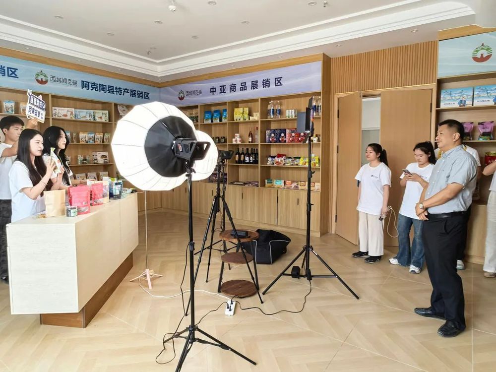 同日下午,实践队员在西域阿克猫电商企业开展直播兴疆活动,将阿克陶县的干果、手工艺品推向全国。刘云海仔细询问直播策划、流量运营等专业细节,对团队“直播+电商+乡村振兴”的实践模式给予高度评价。他指出:“青年学子要把论文写在祖国大地上,用数字技术激活边疆特色产业,让共同富裕的阳光照亮帕米尔高原。”