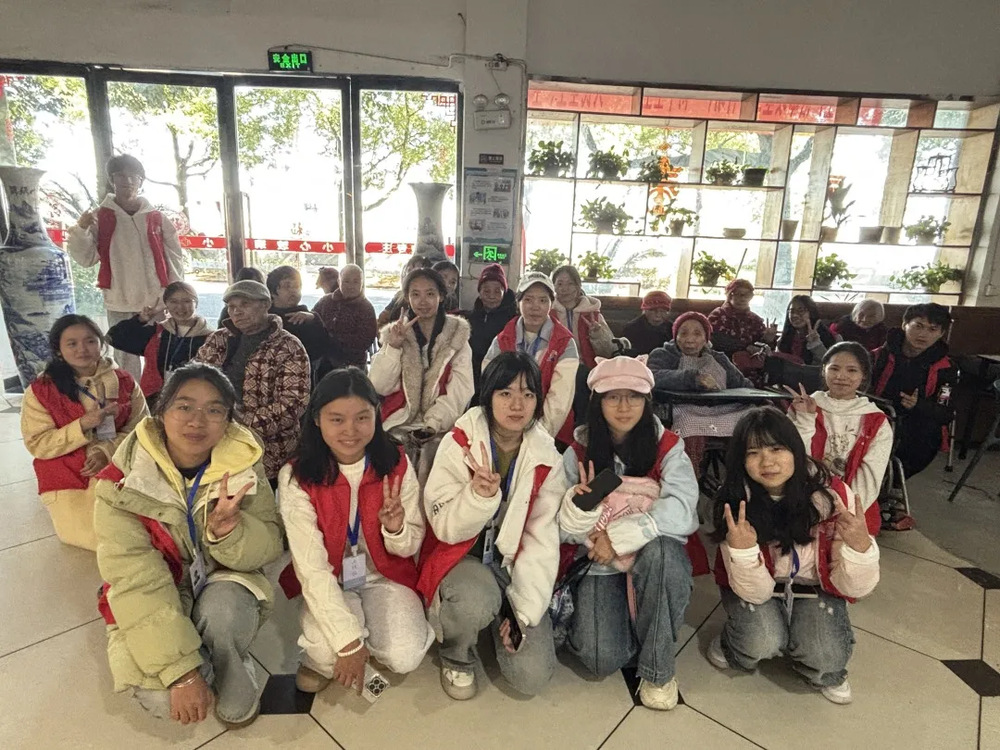 最后,志愿者们小心搀扶老人来到大厅就座,并为他们合唱了一首《晴天》。歌声悠扬,承载着深深的问候与祝福。活动临近尾声时,大家与老人合影留念。镜头里,老人们笑容慈祥,志愿者们青春洋溢,整个颐养院充盈着温情与暖意,也为这个冬日留下了一段美好的记忆。
