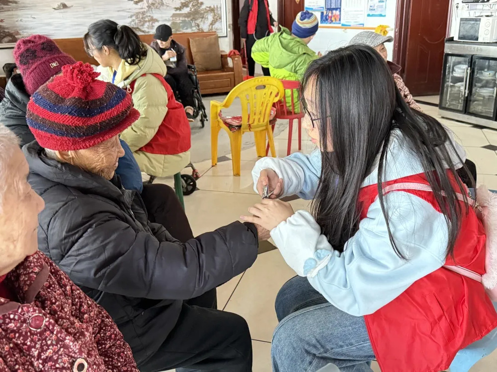 随后,志愿者们亲切地坐到老人身旁,握起他们的手唠起家常,耐心倾听老人的讲述,活动现场洋溢着温馨与欢笑。一些志愿者还细心为老人们修剪指甲,动作轻柔、耐心地询问老人感受,修剪后又仔细打磨甲缘,防止划伤,每一个细节都满含对老人的呵护之情。