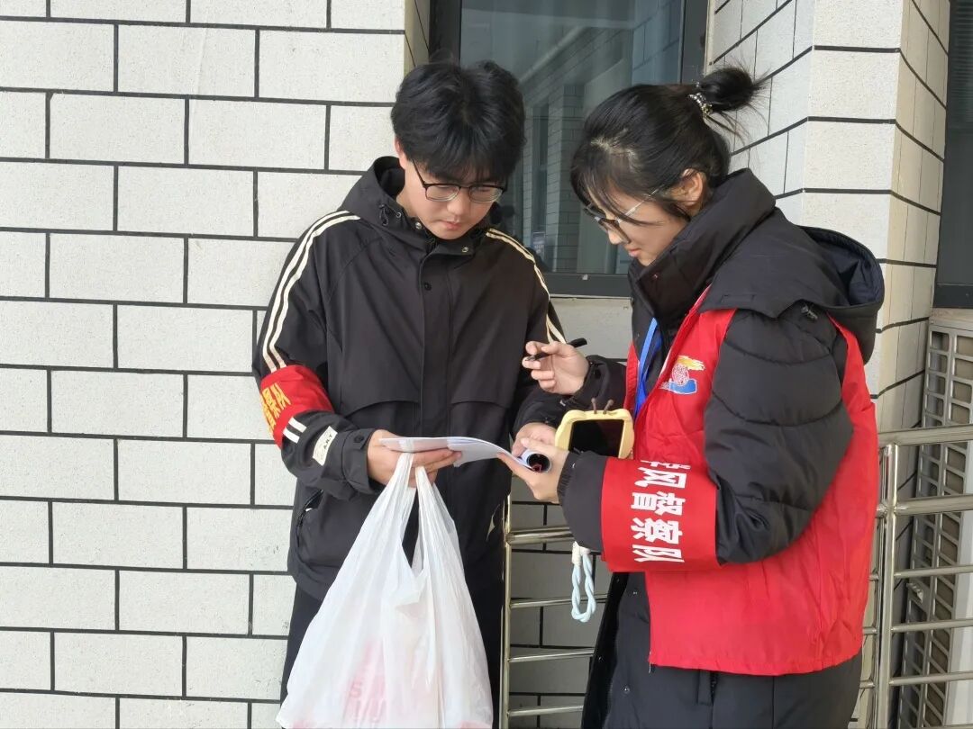 临近上课时段,志愿者们仍在各点位值守,轻声提醒同学注意作息、按时上课。通过持续贴心的引导,助力同学们逐步树立守时的意识,养成规范有序的课堂习惯。