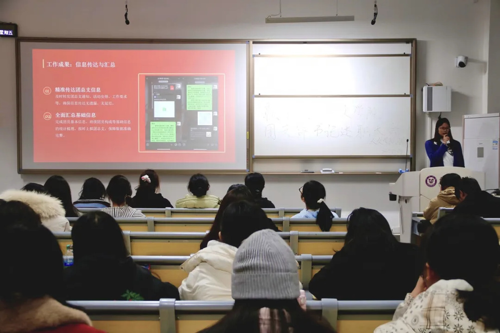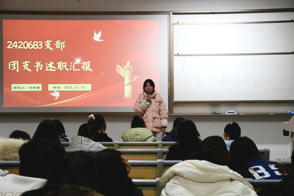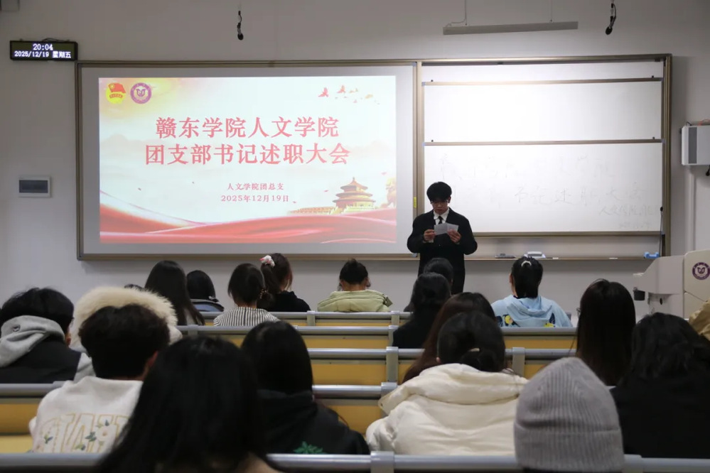 为切实加强基层团支部建设,全面检验团支书履职成效,搭建各支部经验交流、互学互鉴的平台,赣东学院人文学院团总支于2025年12月19日晚在勤学楼101教室召开2025年度团支部书记述职大会。参加此次大会的有我院团总支学生副书记敖忆浛、刘威,24、25级团支书和团总支成员。