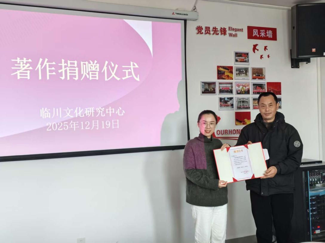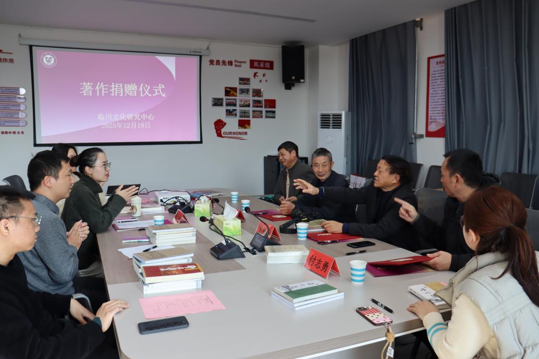 2025年12月19日上午,临川文化研究中心于人文楼514举办了一场著作捐赠仪式,四位来自黎川的地方文化研究学人向中心慷慨捐赠了图书三百余本,人文学院副院长程娟出席、研究中心办公室主任张学文主持捐赠仪式。