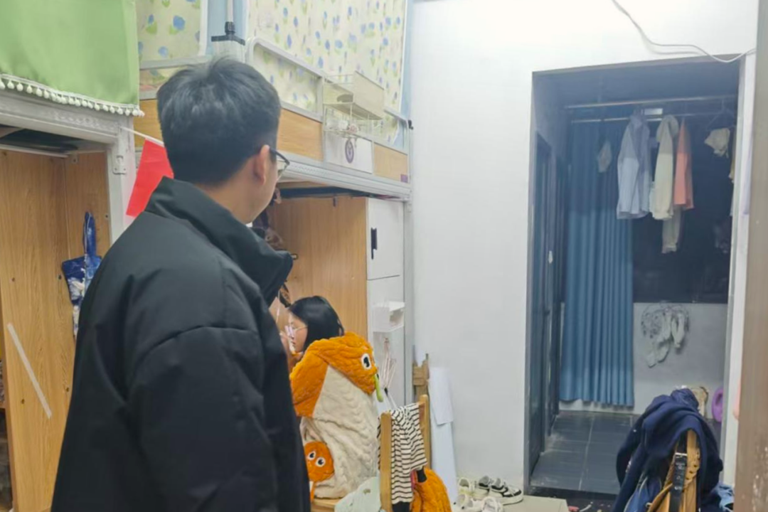检查过程中,老师们仔细查看学生宿舍的用电安全、消防安全、卫生状况以及是否使用违规电器等情况,并与同学们进行了亲切地交流,提醒学生注意用电安全,保持宿舍和个人卫生。