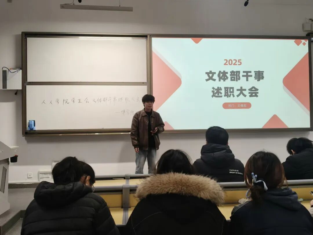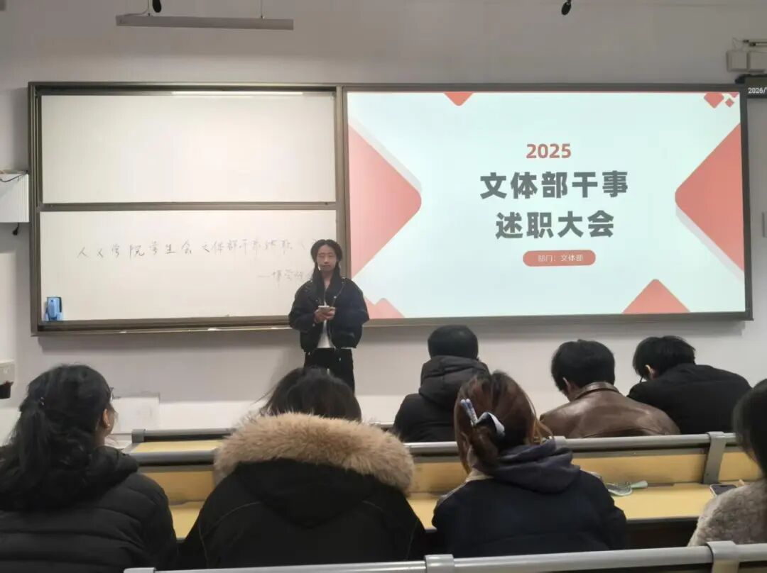2025年12月24日,人文学院学生会工作人员述职大会于勤学楼108教室顺利召开。会议上,五个部门工作人员依次上台述职,紧紧围绕2025年度工作情况,全面梳理部门工作中的亮眼成果,结合实际工作分享了宝贵经验与个人成长心得。在此基础上,大家也积极正视工作开展中存在的短板与不足,明确了改进方向。随后,各部门负责人依次对大家过往一年在学生会的工作进行了评议。最后,他们肯定了各部门在各项工作中的亮眼表现,分享了自身履职过程中沉淀的实用经验。此次大会既是对既往工作的全面总结,也是为我院学生会未来工作积蓄前行的力量。