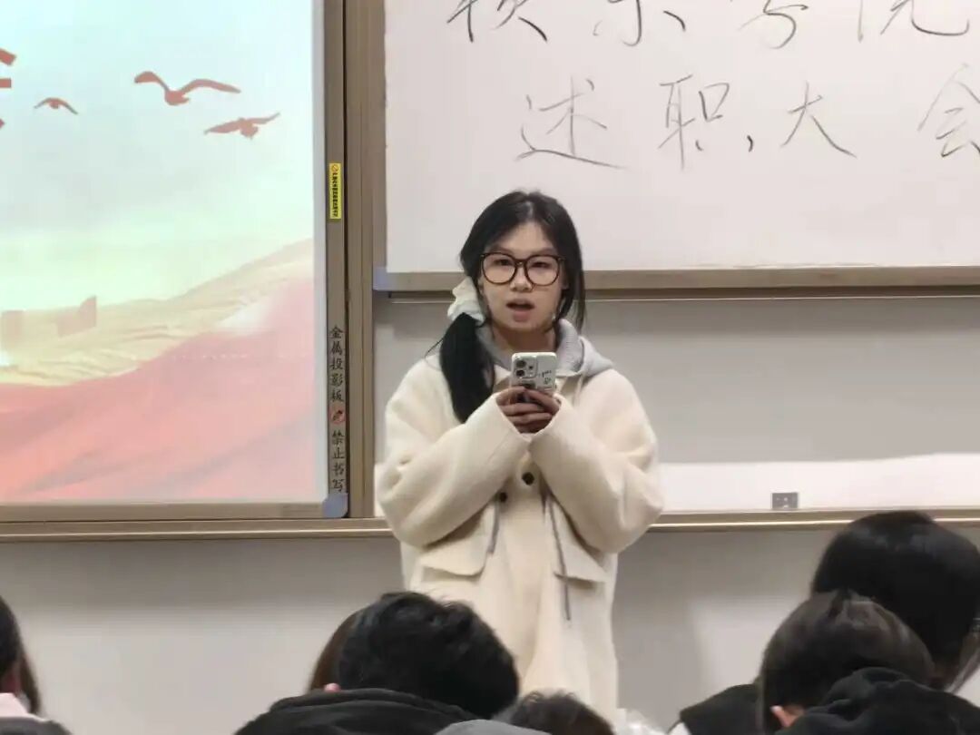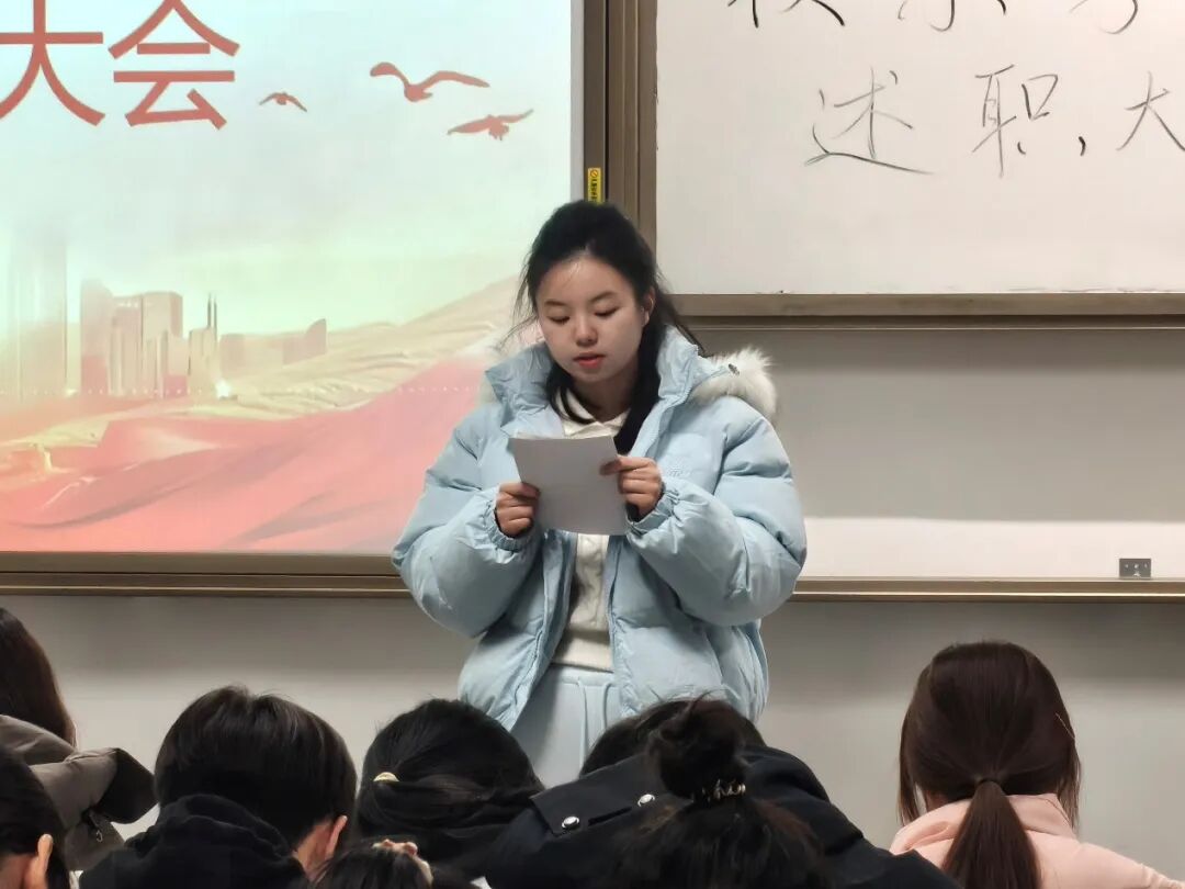 2025年12月27日,人文学院团总支工作人员述职大会于勤学楼109教室顺利召开。各部门工作人员依次上台,围绕本学期履职情况全面复盘,详细梳理在活动组织、日常协作等工作中的收获与成长,同时直面问题、深入剖析自身存在的短板与不足。述职结束后,团总支学生副书记与各部门部长结合大家履职表现展开针对性评议,既充分肯定全体成员的辛勤付出与显著成效,也聚焦工作细节、效率提升等方面给出切实可行的改进建议,并结合我院团总支发展规划明确了未来在开展活动、团队凝聚力建设等方面的重点方向。此次大会凝聚共识、明晰方向,为我院团总支后续高质量发展奠定基础。