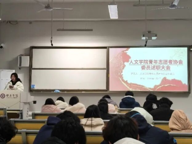 2026年1月7日晚,人文学院青年志愿者协会在勤学楼108教室召开工作人员述职大会。会上,服务部、宣传部、秘书处三个部门工作人员立足岗位职责,依次汇报任期内志愿服务活动组织、宣传推广、后勤保障等工作开展情况,分享工作心得与成长感悟,找到现存问题并提出改进方向。参会成员围绕我院青年志愿者协会未来发展积极交流、建言献策,为志愿服务工作提质增效凝聚共识、汇聚力量。