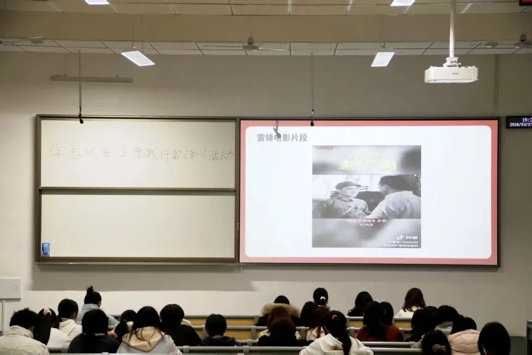 3月27日晚,人文学院学生会功能型团支部、学生会联合在勤学楼阶三教室开展雷锋精神专题学习活动。活动以“讲故事 学理论”开篇,主持人阐释雷锋精神核心内涵与时代价值,播放雷锋主题电影片段;随后的感悟分享环节,学子们从“钉子精神”“螺丝钉品格”等角度分享心得;趣味十足的快问快答环节围绕雷锋生平、精神核心展开,现场氛围热烈,主持人还为表现优异的同学颁发奖品。此次活动以直观生动的形式,让学子深化对雷锋精神的认知,进一步强化道德修养与责任担当。
