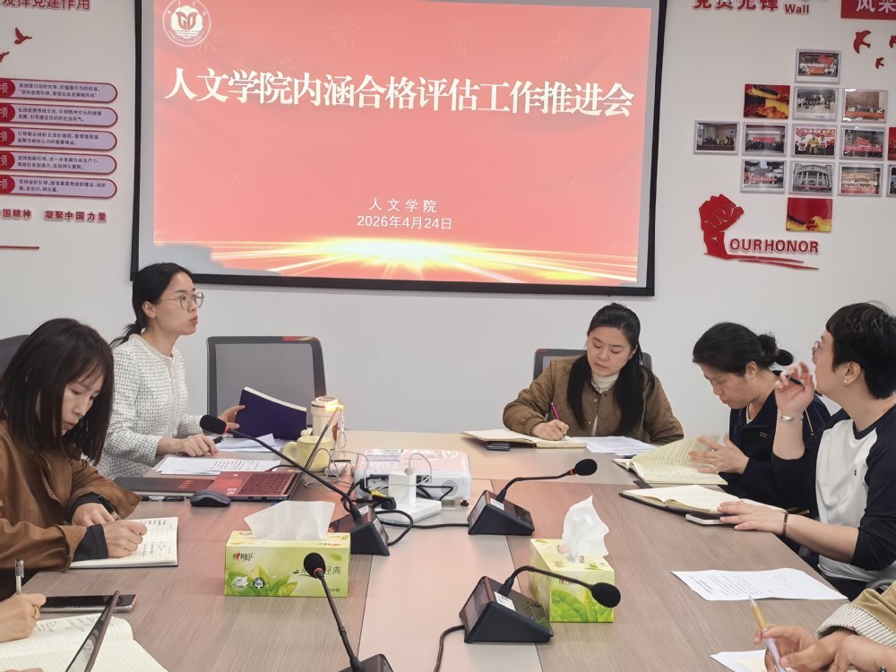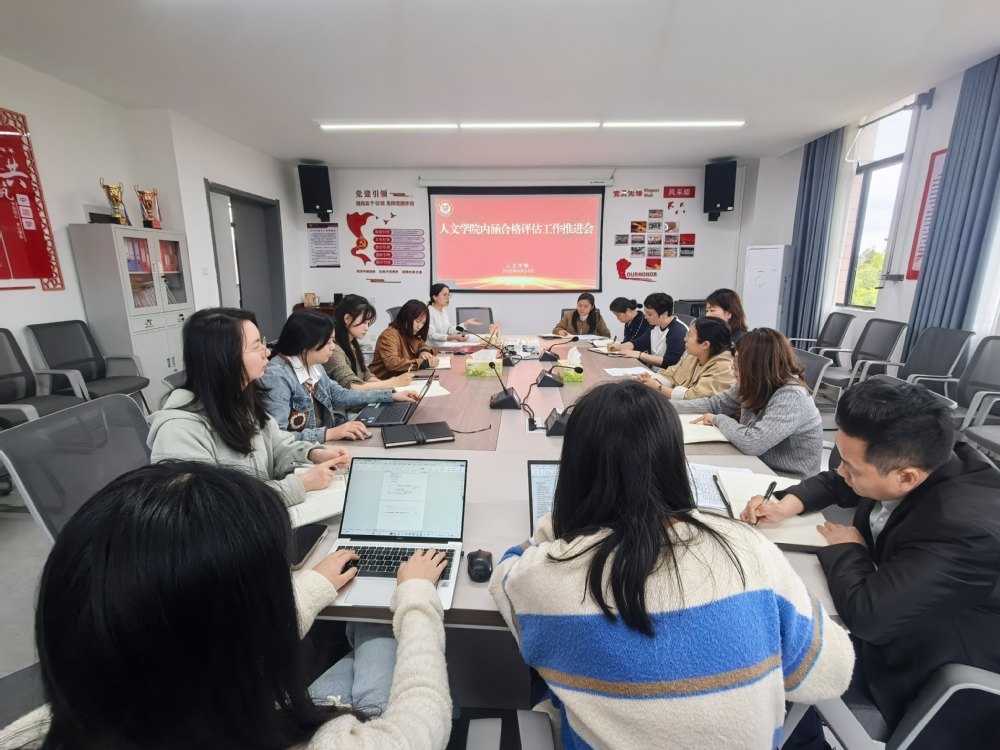 4月24日下午,人文学院召开内涵合格评估工作推进会,全面总结前期筹备进展,系统部署后续迎评各项重点任务,凝聚全院合力,扎实推进内涵合格评估各项工作落地见效。会议由教学副院长程娟主持,院党总支书记储瑶、院长颜小英出席会议,各部门负责人全程参会、协同研讨。